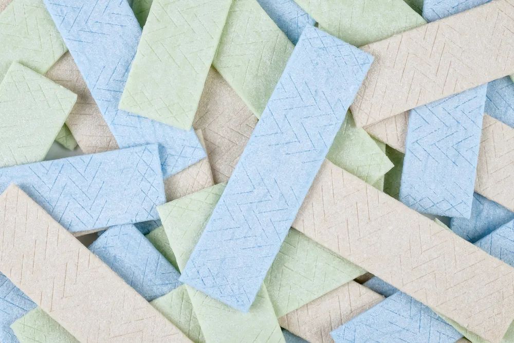 这种口香糖的配方不额外加糖,而是使用木糖醇、山梨糖醇、阿斯巴甜等代糖成分来提供甜味。目前无糖口香糖也是市场主流,商超、店铺都能买到。