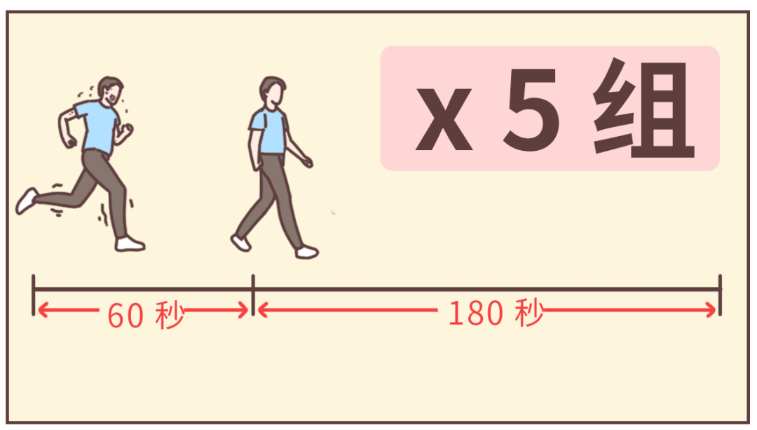 第三,间歇 4~5 公里/小时的散步走 1 分钟