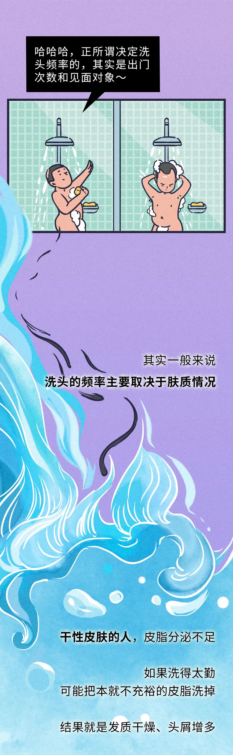 1. 洗头频率取决于肤质情况。所以对于干性皮肤的人,可以隔一两天洗一次,并选用温和保湿的洗发水。而油性皮肤的人,皮脂分泌太旺盛,洗勤快一点没什么问题,每天洗一次也是可以的。