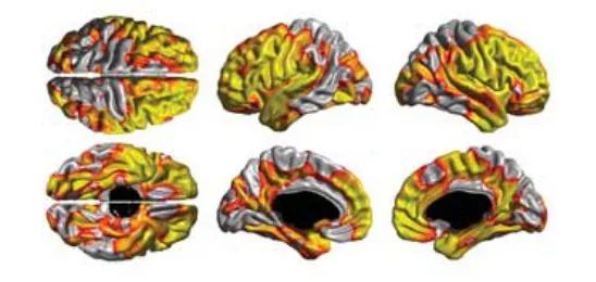 如果继续抽烟抽下去,我们的大脑可能就会萎缩到只剩黄色那部分。
