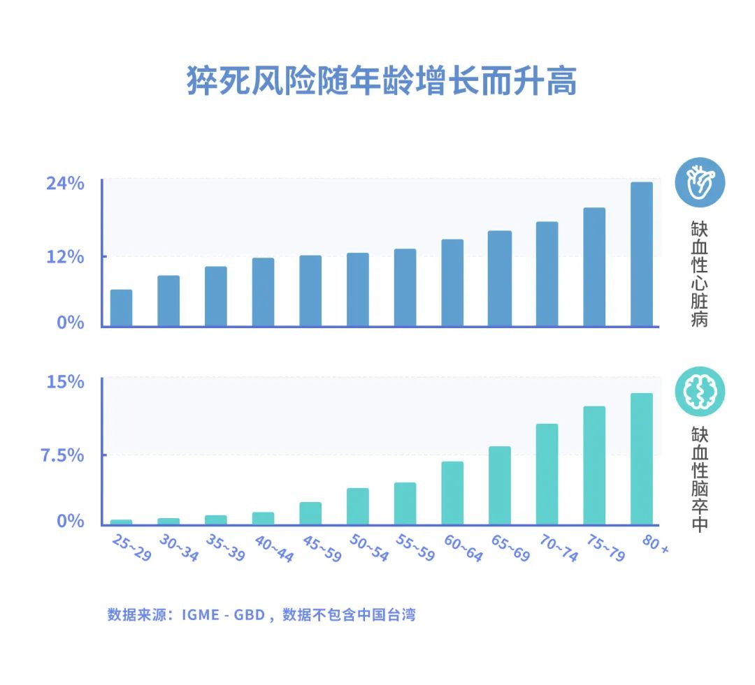 无论是冠心病还是缺血性脑卒中,都和年龄关系密切,死亡率随着年龄增长而攀升。