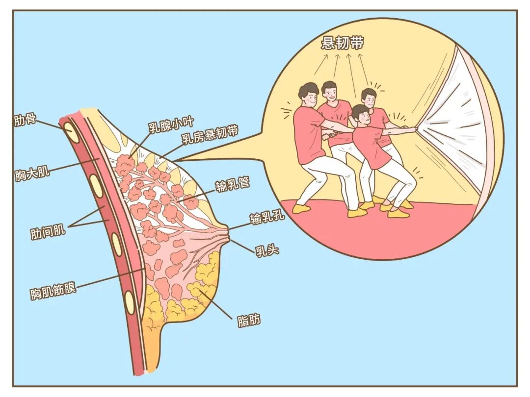 通俗地讲,胸部是靠乳房悬韧带挂住的
